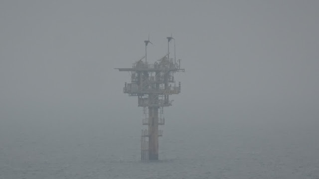Looking out from out balcony at lunchtime, we saw a couple of weird looking platforms that made odd alarm type noises.... three short beeps and then a long one, which we could hear from quite a distance away. They didn't look like oil or gas platforms, more like lookouts. At the time we had no idea what they were, but one of Peter's artist followers was able to tell us that they were unmanned gas platforms.